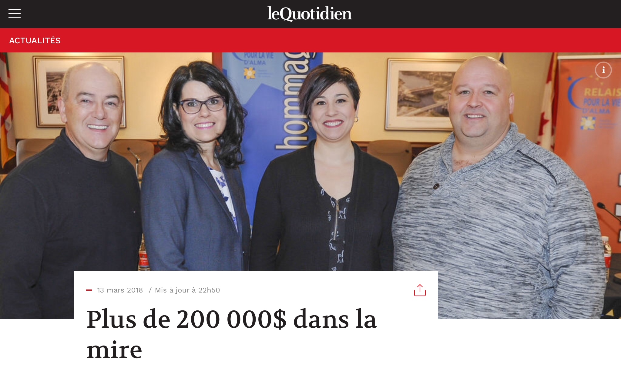 Présidente d’honneur Relais pour la vie d'Alma